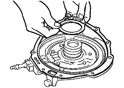 8. Place the selected bearing race and a new gasket onto the oil pump.