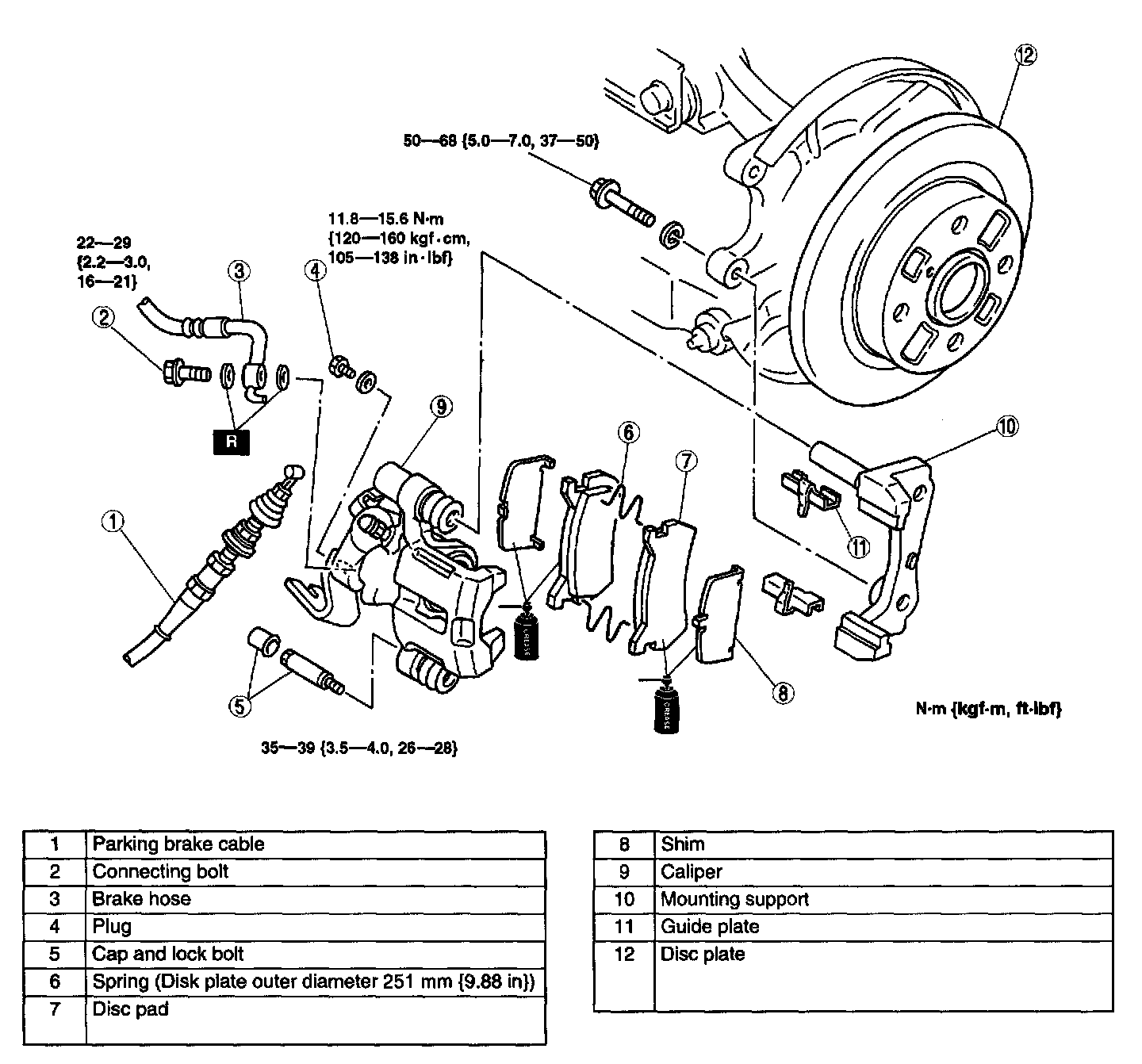 REAR BRAKE (DISC) REMOVAL/INSTALLATION1. Remove in the order indicated in the table.