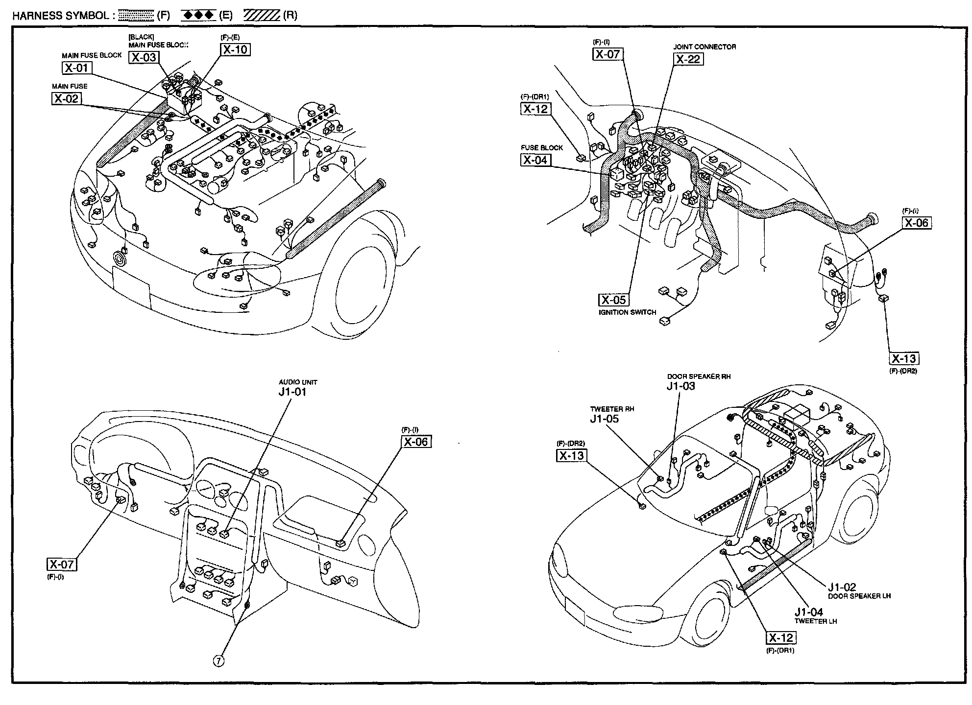 J-1 - Audio System (Normal Audio) Harness/Connector Symbols: