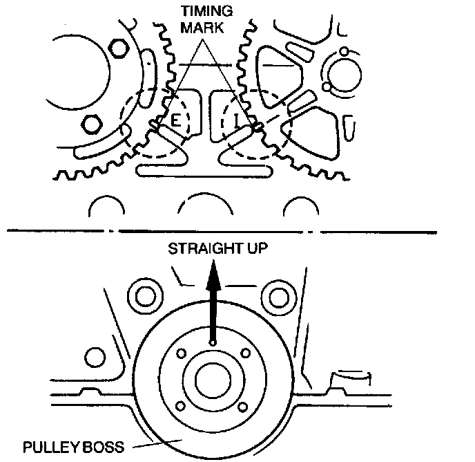 Note: For the crankshaft side, face the locating pin on the pulley boss straight up.