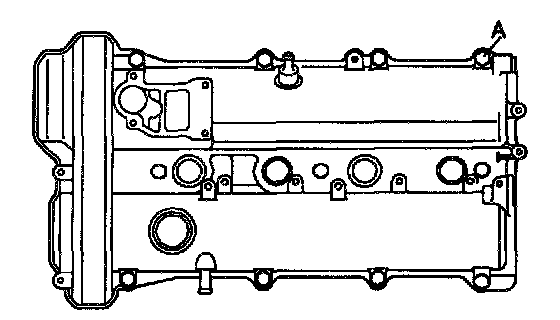 4. Hand-tighten the cylinder head cover bolt A as shown.