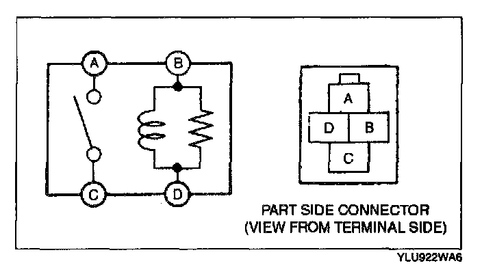 2. Inspect for continuity between the relay terminals using an ohmmeter.