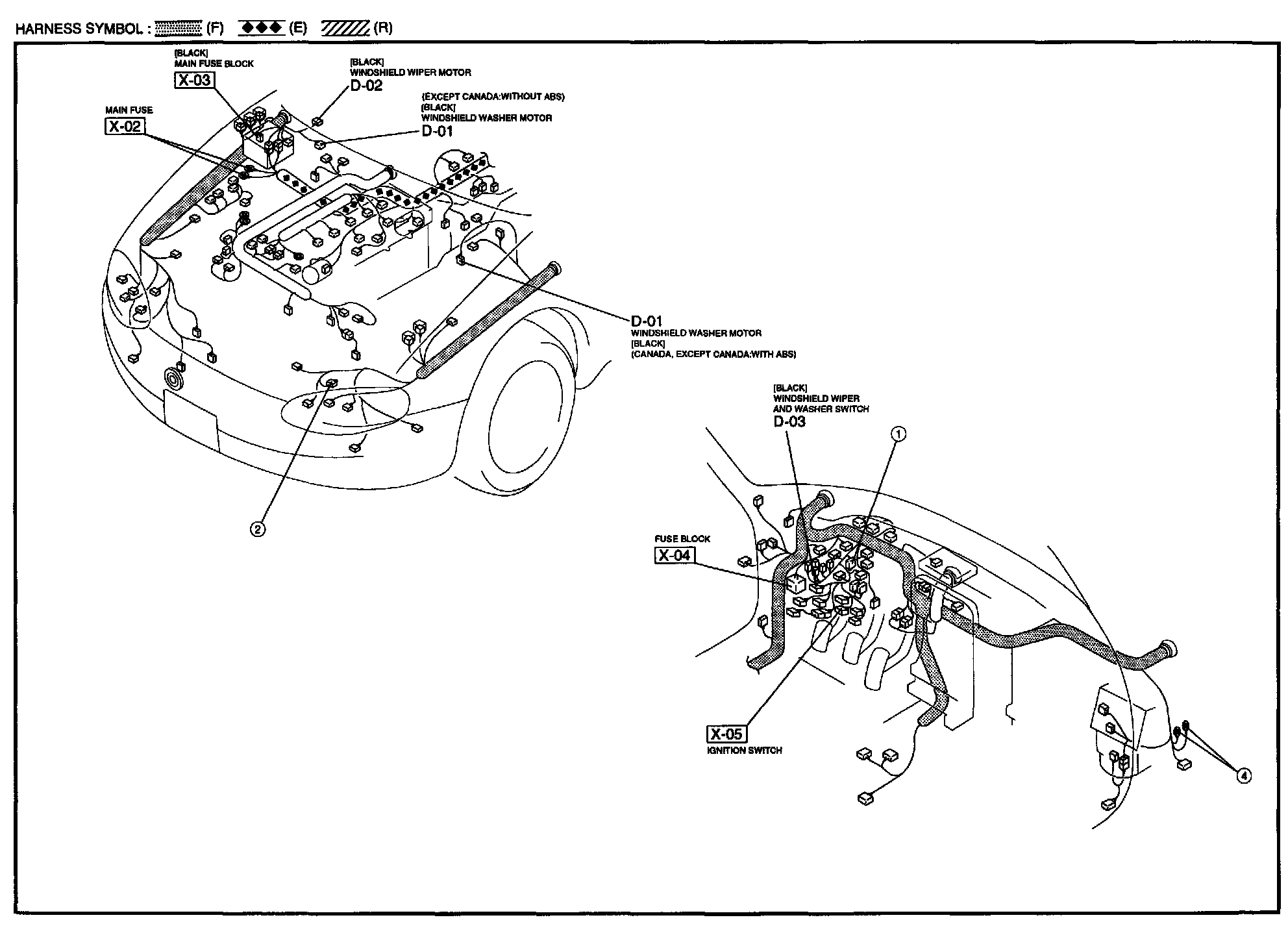 D - Windshield Wiper And Washer Harness/Connector Symbols: