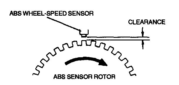 2. Verify the clearance between the ABS wheel-speed sensor and the sensor rotor.