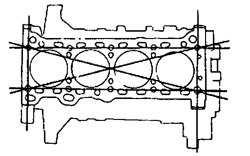 CYLINDER BLOCK INSPECTION/REPAIR1. Measure the distortion of the cylinder block top surface in the six directions as shown.
