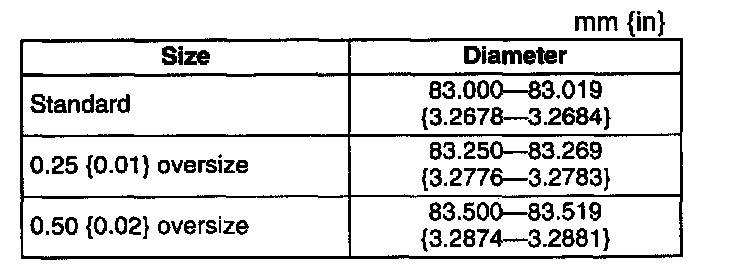 ^ If the cylinder bore exceeds the wear limit, replace the cylinder block or rebore the cylinder and install the oversize pistons so that the specified piston-to-cylinder clearance is obtained.