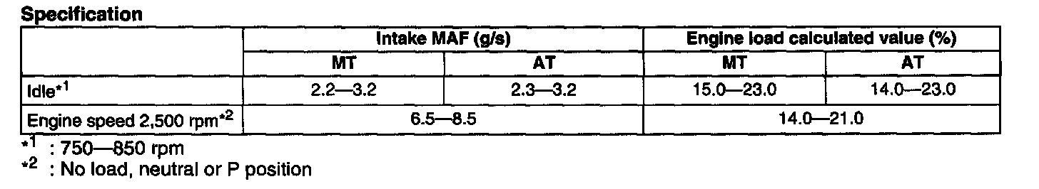 NOTE: The scan tool shows the MAF rate and load value.