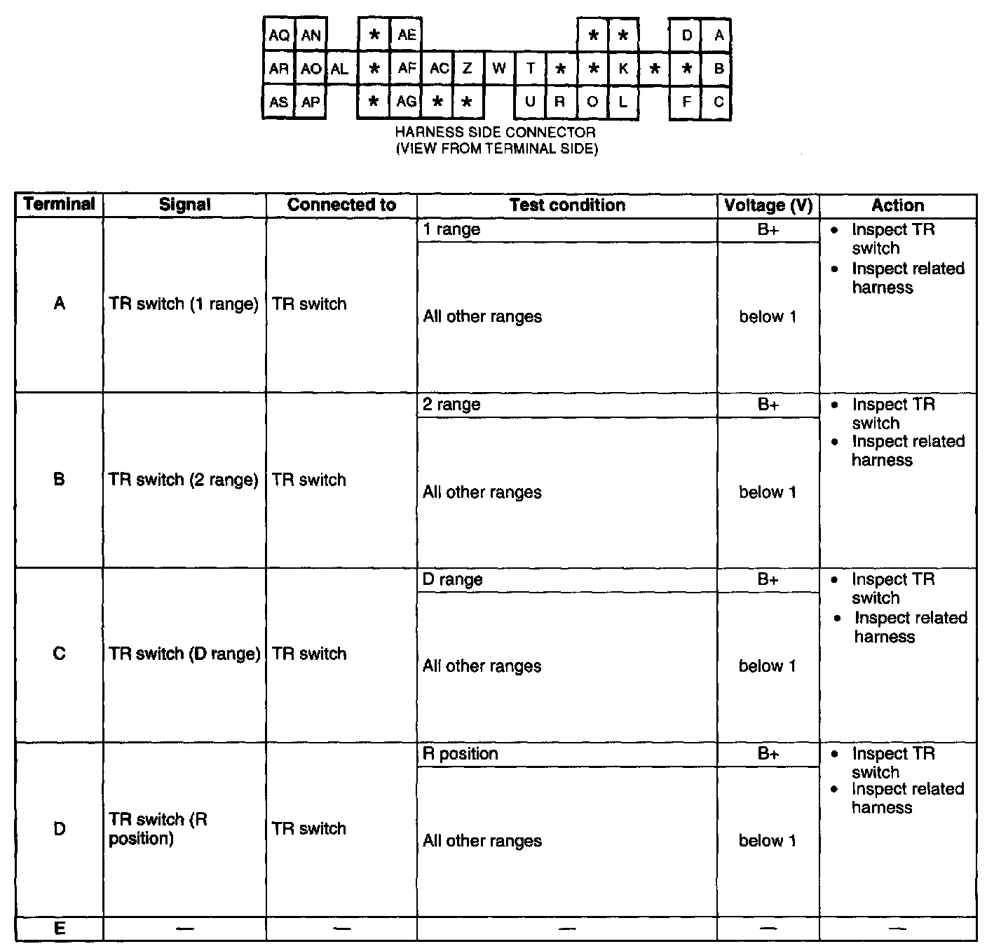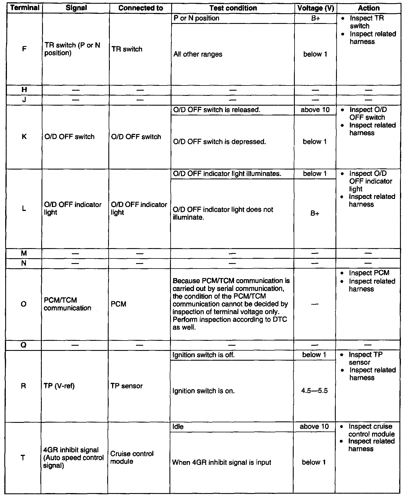 ^ If any TCM terminal voltage is incorrect, inspect the related input of output devices and wiring.