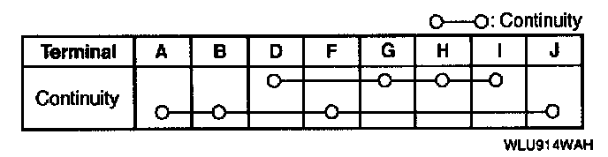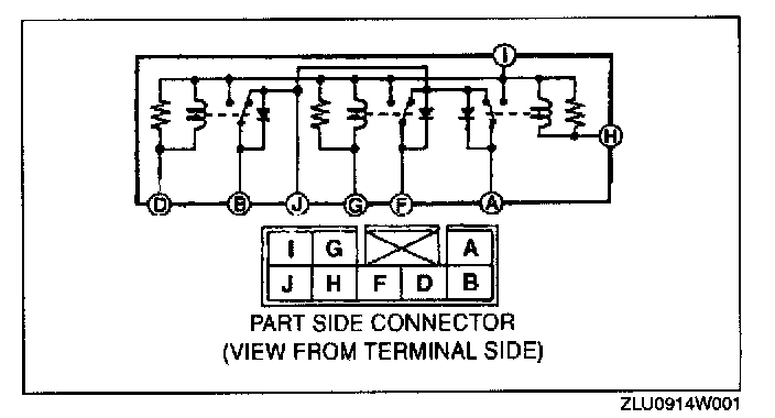 1. Disconnect the door lock control module connector.2. Inspect for continuity between the terminals of the door lock control module connector.