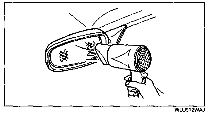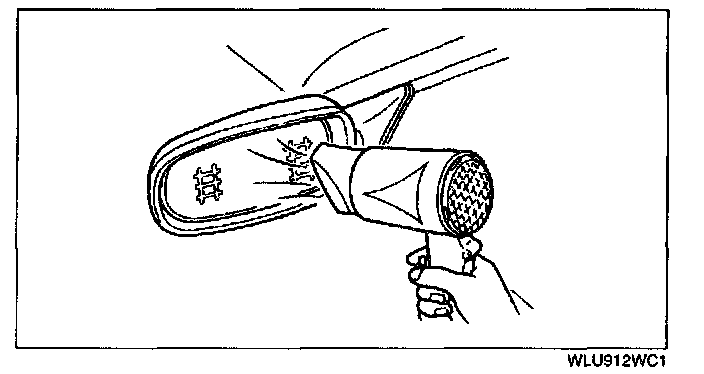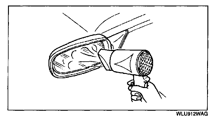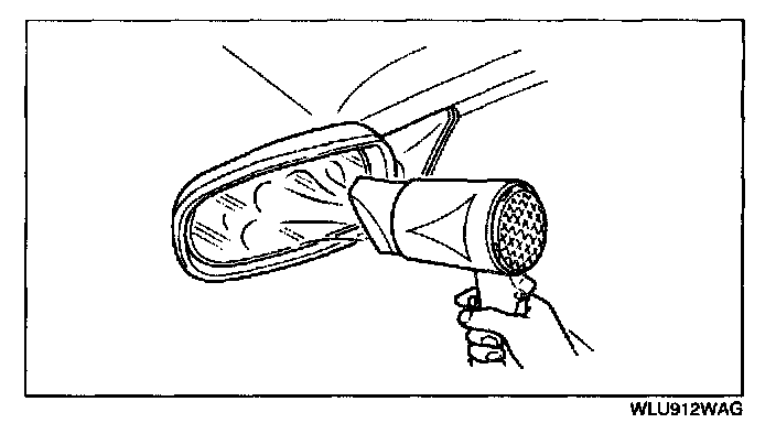 7. Warm the adhesive surface of the mirror body using a hot air blower.