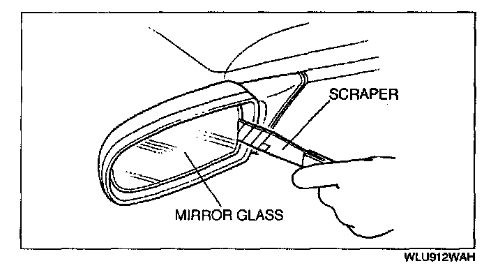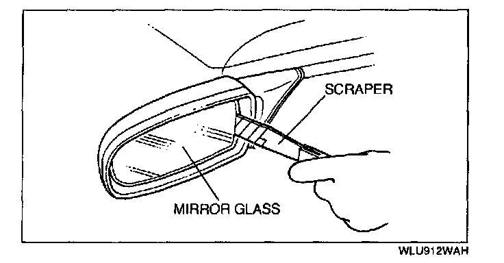 3. Insert a tape-wrapped scraper between the mirror glass and the mirror body, and pry the glass loose.
