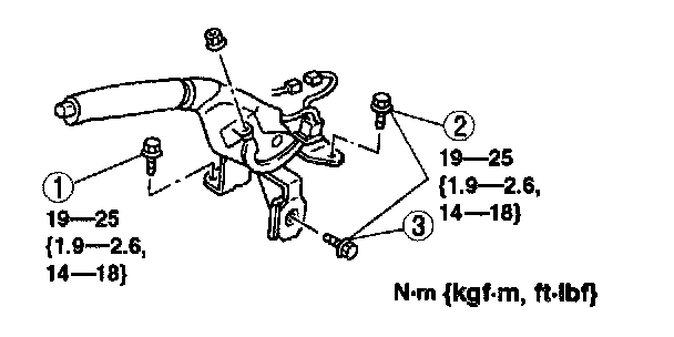 1. Tighten the parking brake lever mounting bolts in the order shown in the figure.