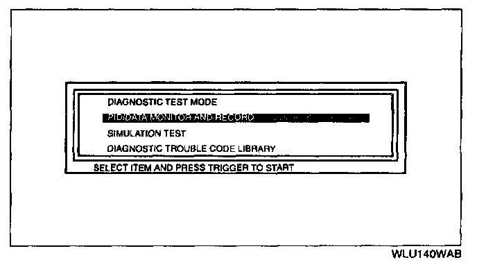 7. Select the "PID/DATA MONITOR AND RECORD" function on the NGS display.