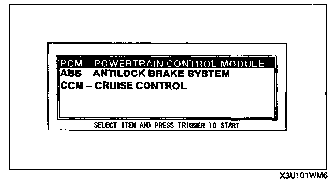 8. The screen will display PIDs. Select the appropriate PID for testing, then press the TRIGGER key.