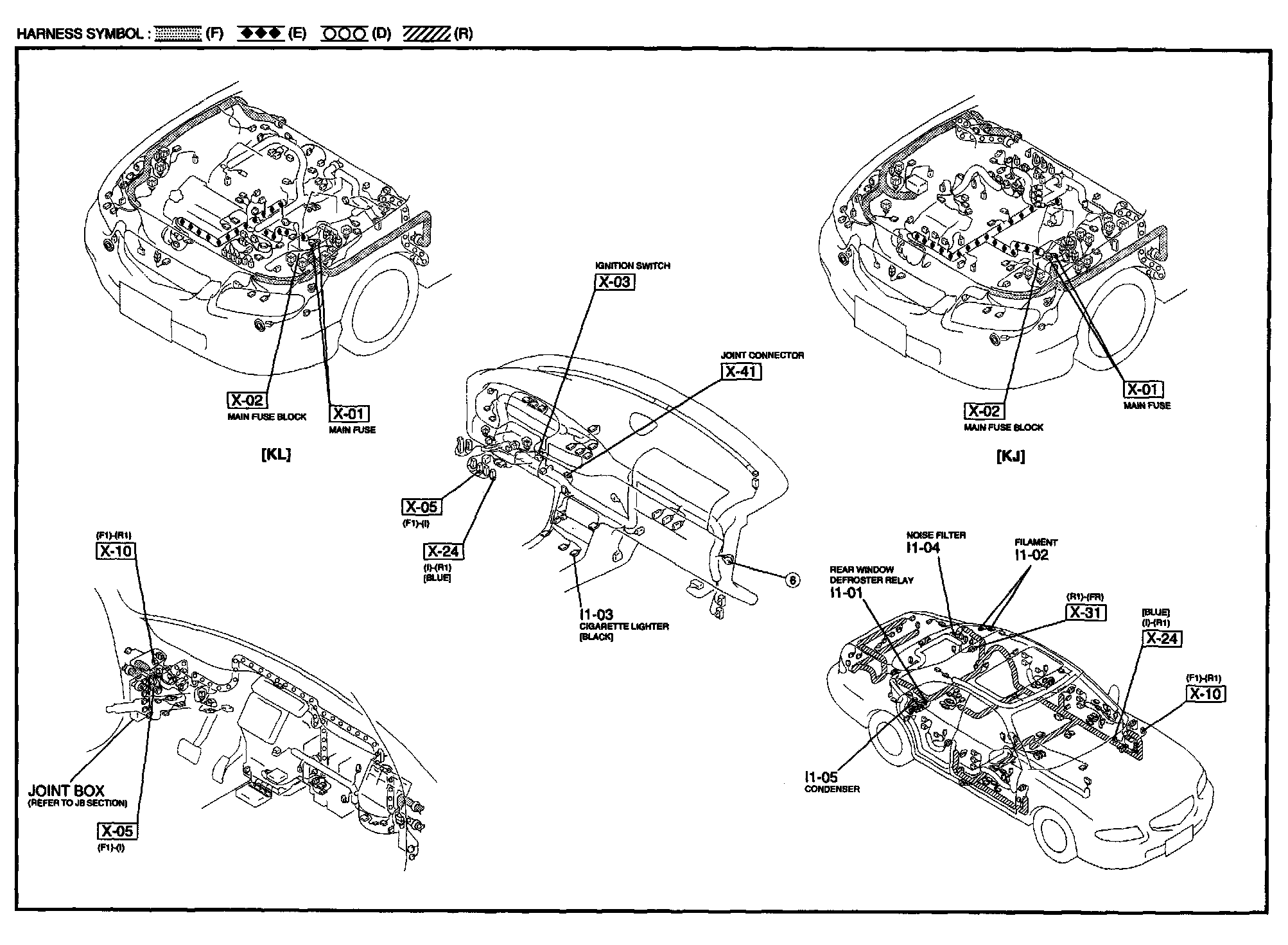 I-1 - Cigarette Lighter / Rear Window Defroster Harness/Connector Symbols: