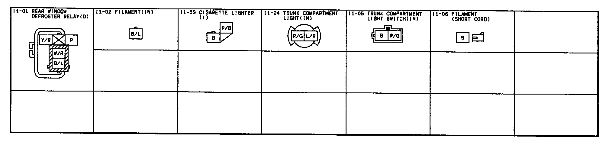 I-1 - Cigarette Lighter/Rear Window Defroster/Trunk Compartment Light Connectors: