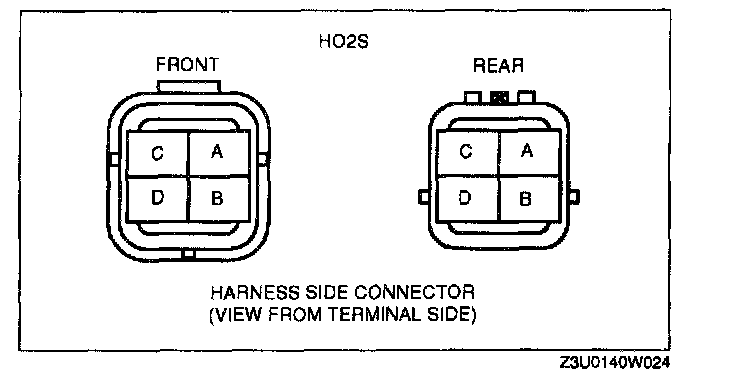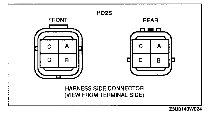 - GND circuit (HO2S connector terminal D and PCM connector terminal 94 (Front), 93 (Rear) to GND)