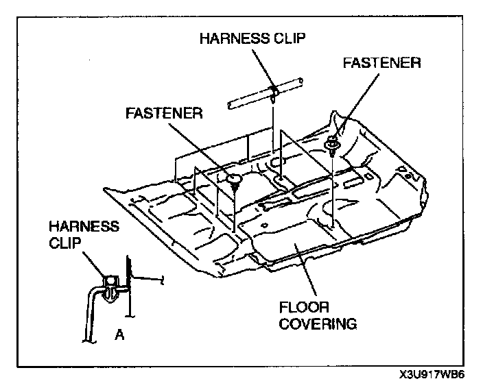 12. Remove the fasteners and clips A, then remove the floor covering.
