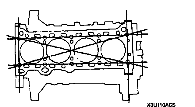 CYLINDER BLOCK INSPECTION/REPAIR1. Measure the distortion of the cylinder block top surface in the six directions as shown.