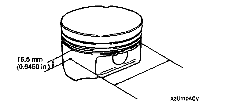 1. Measure the outer diameter of each piston at a right angle (90°) to the piston pin, 16.5 mm (0.6450 inch) below the oil ring groove lower edge.