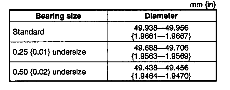 - If it is out of specification, replace the crankshaft or grind the journal and install the undersized bearing.