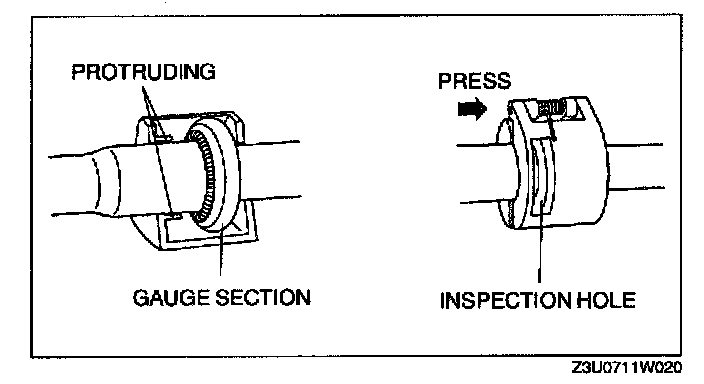 2. While looking through the inspection hole of the SST, insert the protruding part of the SST until it makes contact with the gauge section.