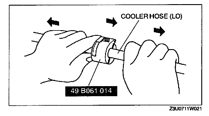 NOTE: The cooler hose (LO) can be disconnected easily from cooling unit by pulling from the cooler hose (LO) while maintaining the pressure of the protruding part of the SST.