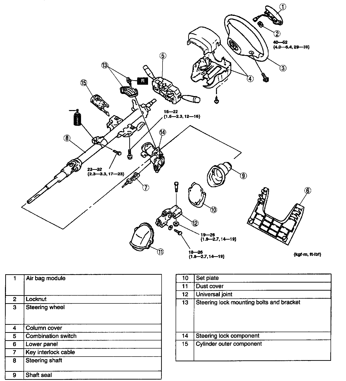 STEERING WHEEL AND COLUMN REMOVAL/INSTALLATION1. Remove in the order indicated in the table.