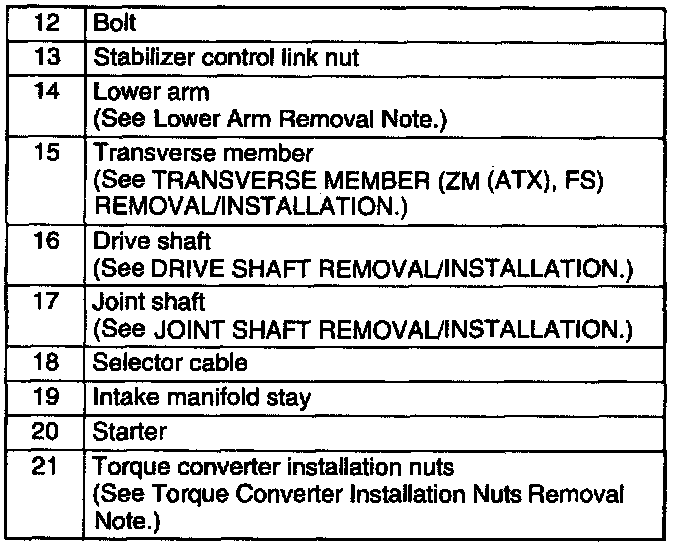 Transaxle Removal Note