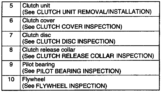 CLUTCH COMPONENT LOCATION INDEX