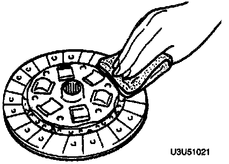 1. Inspect the contact surface of the clutch disc for scoring, cracks, burning, and oil contamination.