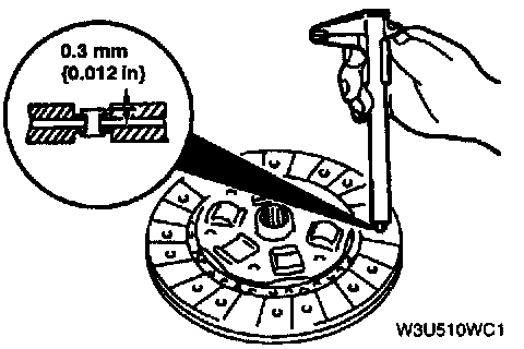 ^ If the thickness of the lining at any rivet head is less than the minimum, replace the clutch disc.