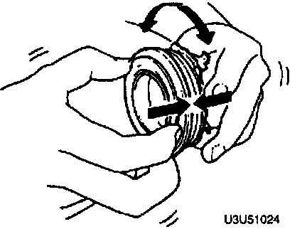 1. Without removing the pilot bearing from the flywheel, turn the bearing while applying force in the axial direction.
