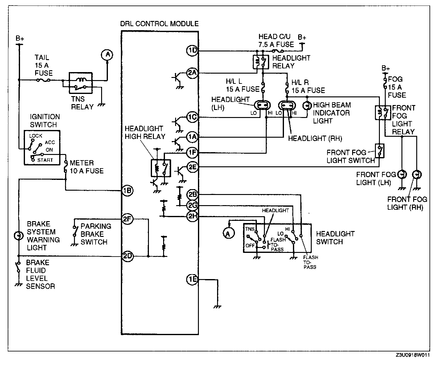 Daytime Running Light (DRL) System Wiring Diagram: