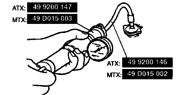 Caution: Applying more than 123 kPa (1.25 kgf/cm, 17.8 psi)can damage the hoses, fittings, and other components, and cause leaks.