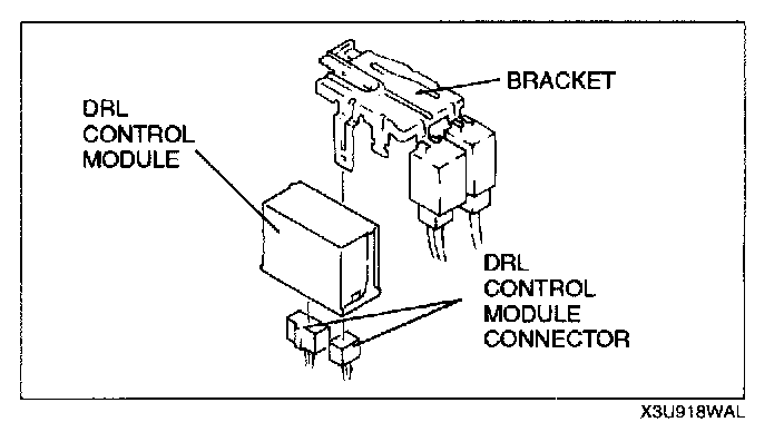 NOTE: Because the lock section of the control module is damaged easily, do not remove the control module from the bracket unless replacement is necessary. Always perform an inspection of the DRL control module before removal.