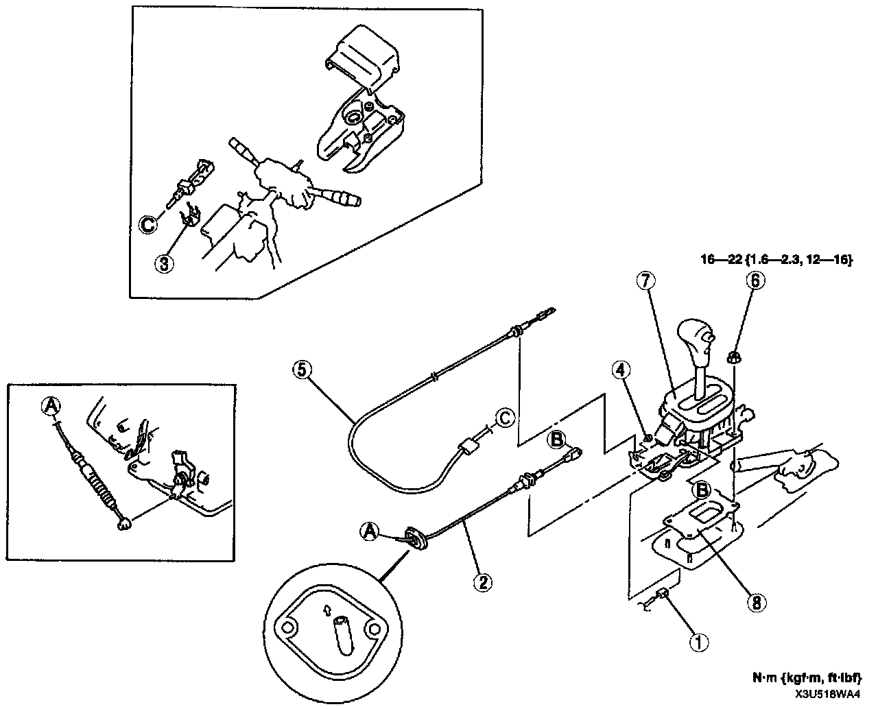 4. Install the selector cable to the manual shaft lever in such a way that the selector cable does not bear a load.