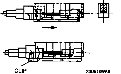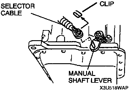 - Remove the clip shown in the figure before removing the selector cable from manual shaft lever.