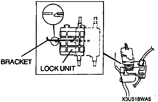 3. From this position, slide the lock unit to fix the lock unit hook into the bracket hole securely as shown in the figure.