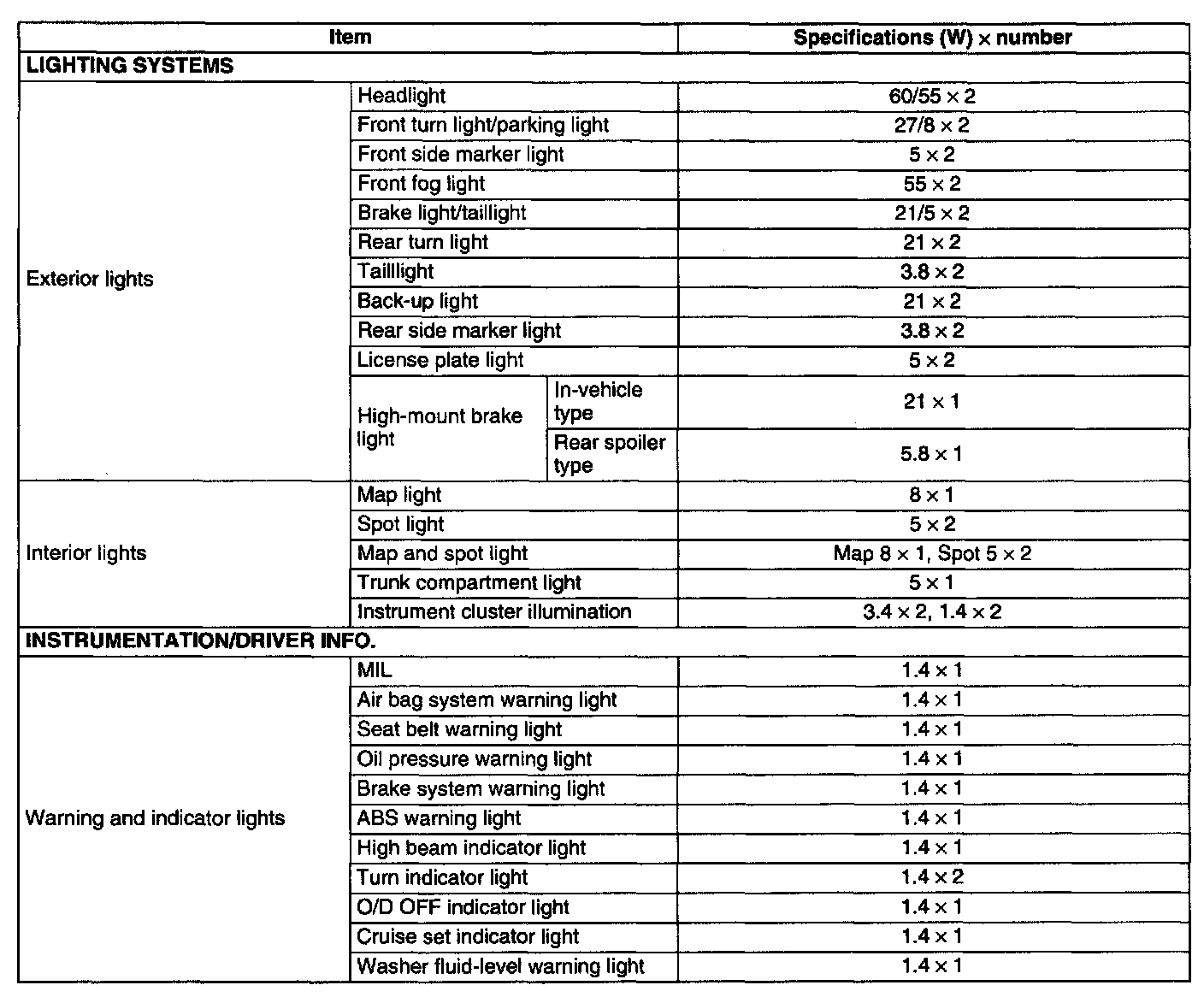 Light Bulb Specifications: