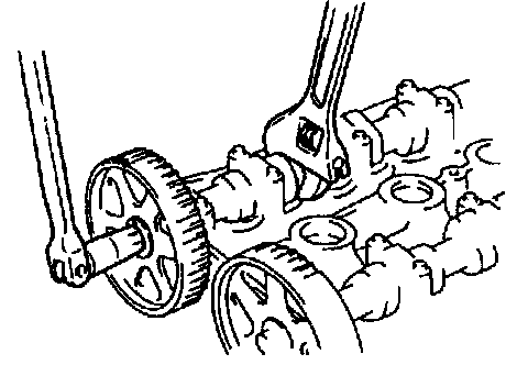 2. Hold the camshaft using a wrench on the cast hexagon as shown.
