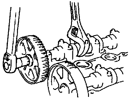 3. Hold the camshaft using a wrench on the cast hexagon as shown.