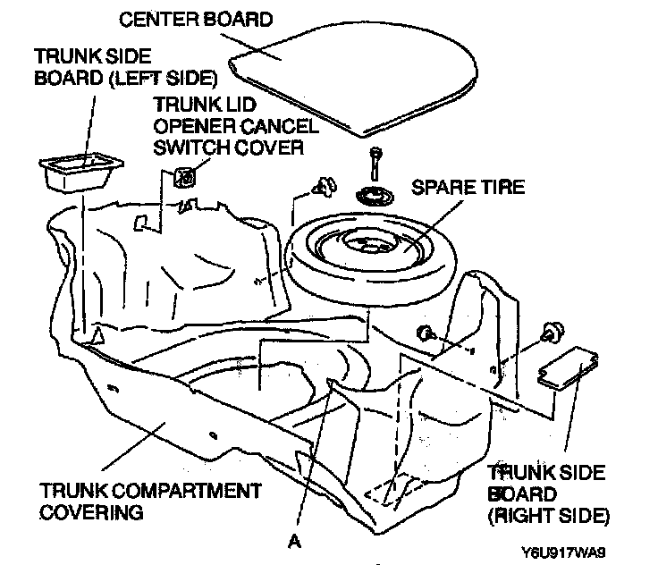 TRUNK COMPARTMENT COVERING REMOVAL/INSTALLATION1. Remove the center board and the spare tire.