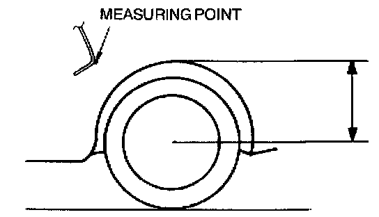7. Measure the height from the center of the wheel to the fender brim. The difference between the left and right measurement must not exceed 10 mm (0.39 inch).