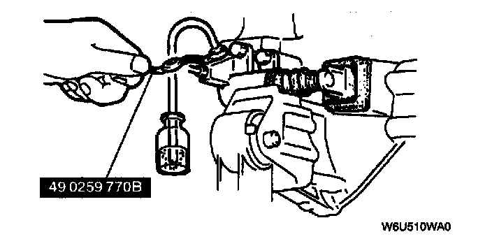 5. With the clutch pedal depressed, loosen the bleeder screw using the SST to let fluid escape. Close the bleeder screw using the SST.