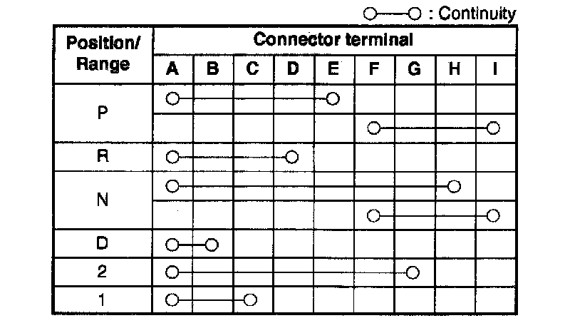 TRANSAXLE RANGE SWITCH INSPECTIONNote: Input signal of the TR switch can be inspected with the WDS or equivalent.