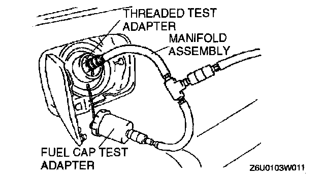 4. Connect the threaded test adapter (part of SST) to the manifold assembly and fuel-filler neck.