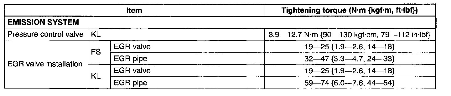 Engine Tightening Torque - Emission System: