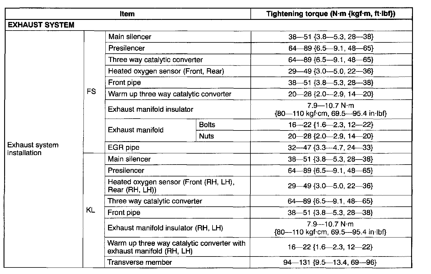 Engine Tightening Torque - Exhaust System: