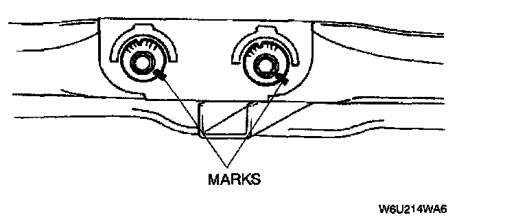 2. Align the marks made before removing the adjusting cam bolt. Tighten the nut.